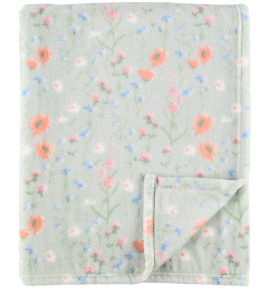 Flīsa sega, kas izgatavota no mīksta flīsa materiāla ar ziedu rakstu.